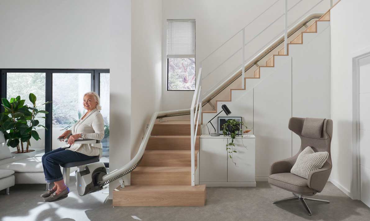 The Flow X removes the stairlift chair obstruction by parking the seat away from the staircase, making it often a safer alternative for both the user and other people using the staircase.